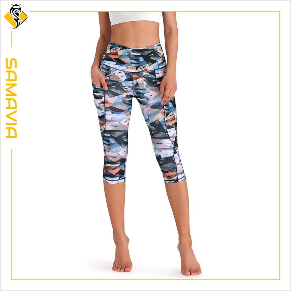 SAMAVIA High-Waist Active Capri Pants for Women Elastic Waist Gym Wear with Lace Decoration Skinny Fit for Winter