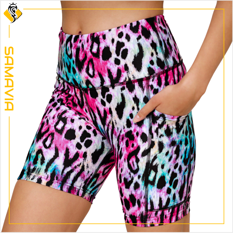 SAMAVIA Sublimated Yoga Shorts for Women Custom Athletic Shorts for Gym, Fitness, and Yoga Workouts