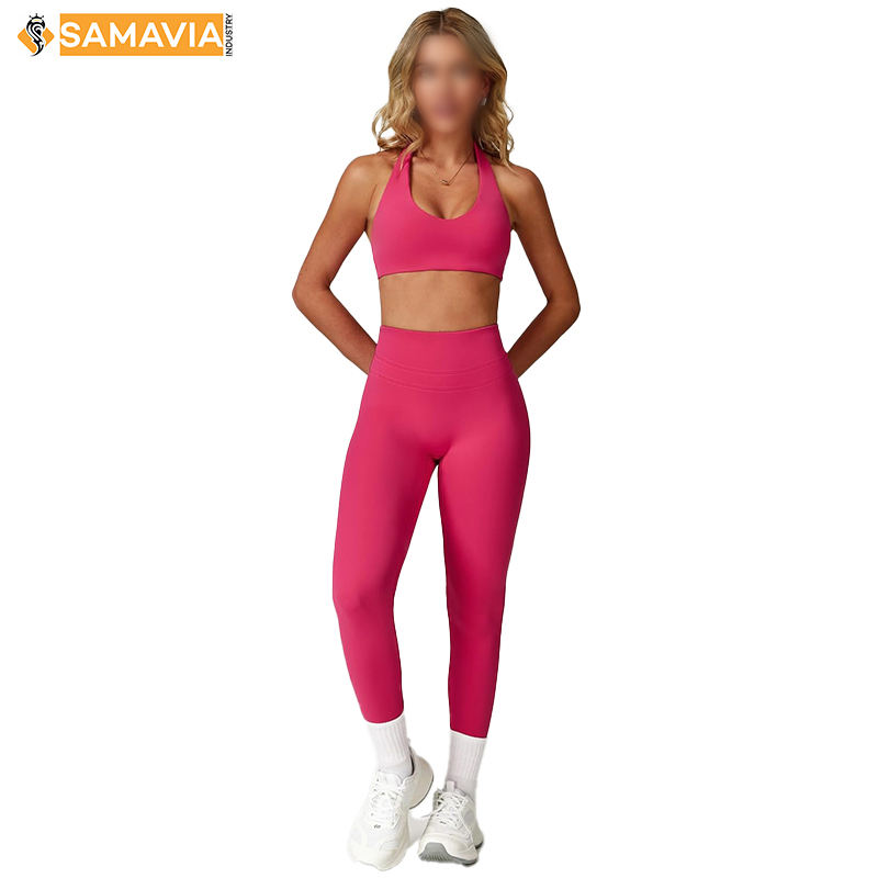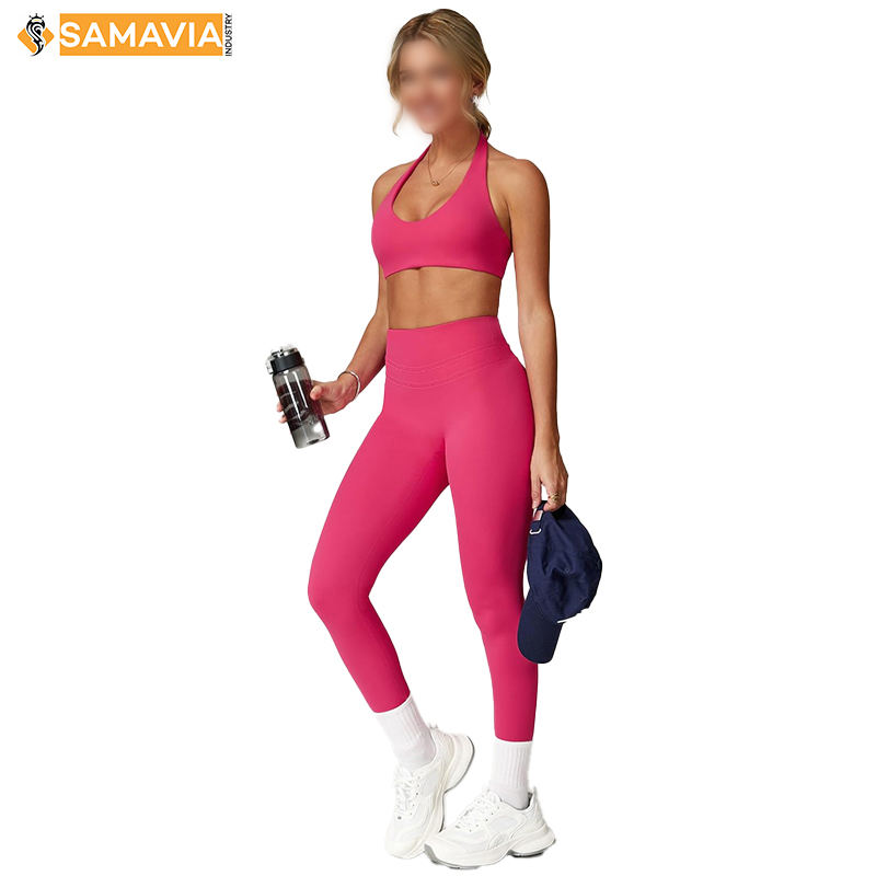 SAMAVIA Women's Activewear 2-Piece Set High-Waist Leggings & Sports Bra Solid Gym Workout Yoga Fitness Custom Logo RTS USA UK