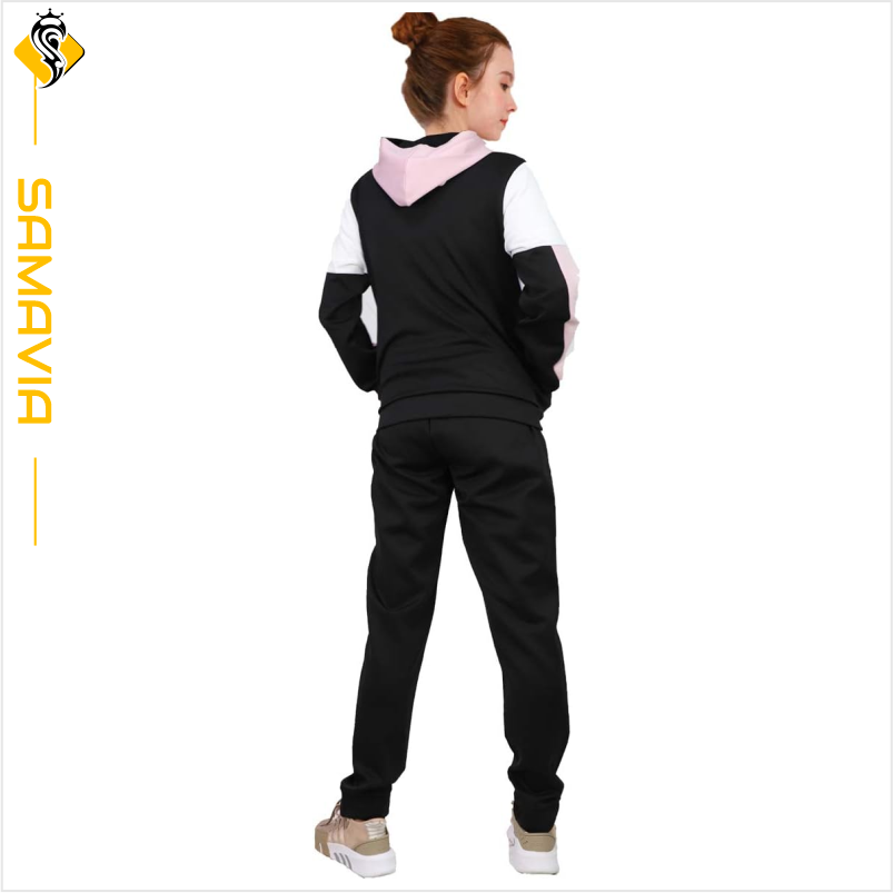 SAMAVIA Women's Plus Size Hooded Solid Spring Tracksuit Soft Stretchy for Sports & Leisure