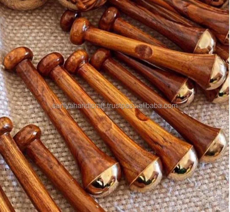 SANIYA HANDICRAFT's High Quality Natural Wooden Kansa Wand Hexagon Polished for Face Use Acacia Wood and Brass Popular Worldwide