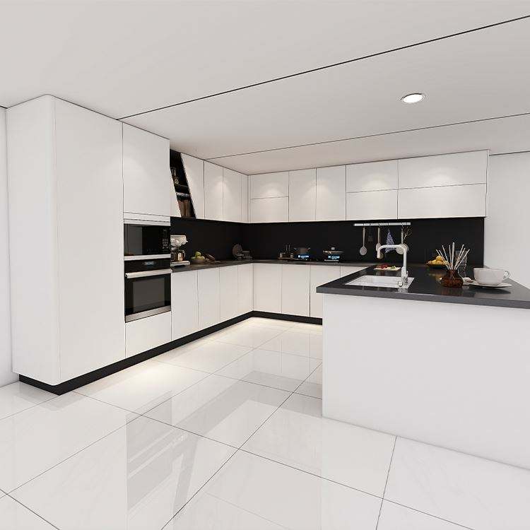 SANTOPOVA Glossy L-Shaped Modern Modular Kitchen Cabinets | Custom Lacquer Finish with Handleless Design for Apartment Projects