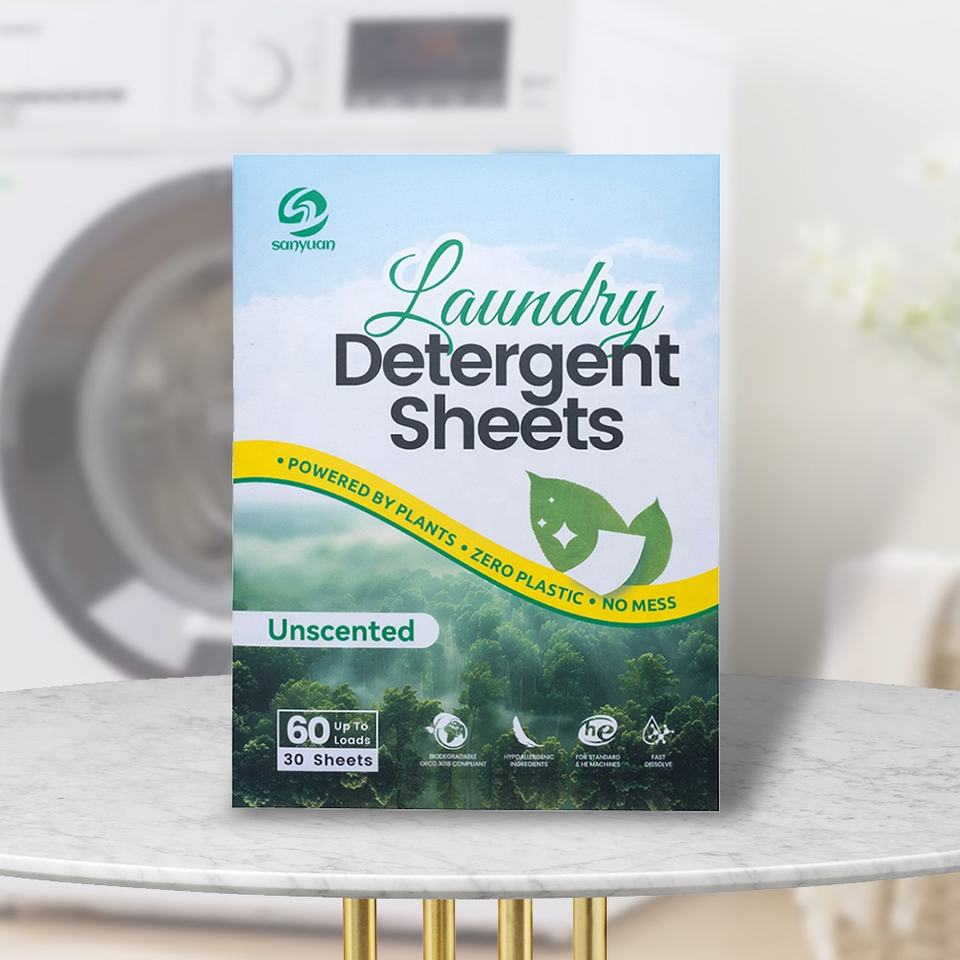 SANYUAN Eco Friendly Washer Soap Strips Plant Based Laundry Sheets Detergent Stain Remover Biodegradally Paper Laundry