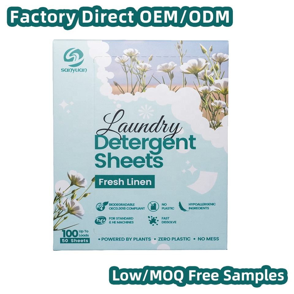 SANYUAN Eco-friendly 11*14cm Fresh Linen Scent Deep Cleaning Brightening Laundry Detergent Sheets 50 Sheets Laundry Tablets