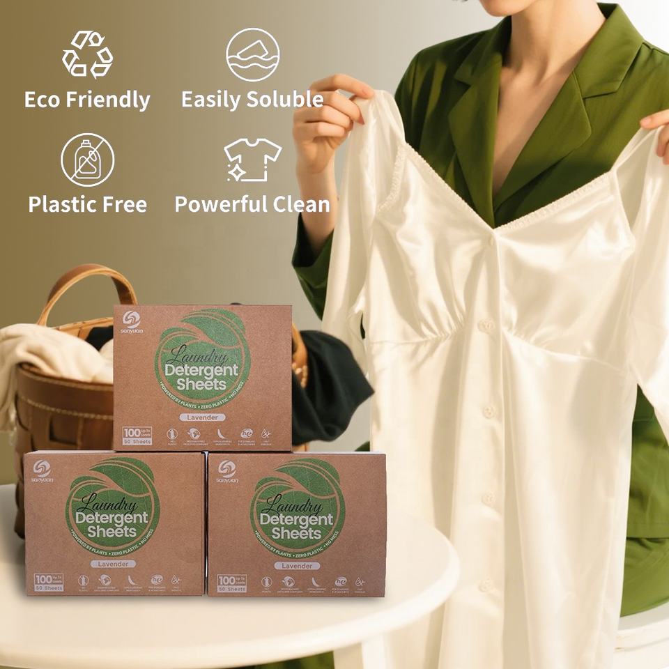 SANYUAN Factory Price Eco-friendly Laundry Strips Lavender Fragrance Laundry Detergent Sheets Box with Solid Active Anzyme