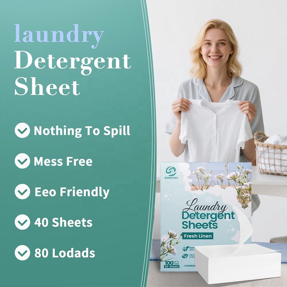 SANYUAN Factory Price Wholesale Washing Clothes Sheets Eco Friendly Biodegradable Anti Static Laundry Detergent Sheets