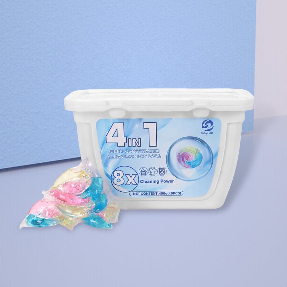 SANYUAN High Efficiency 4 Chamber Eco-friendly Biodegradable Disposable Laundry Soap Detergent Pods Softener Sterilizes 4in1