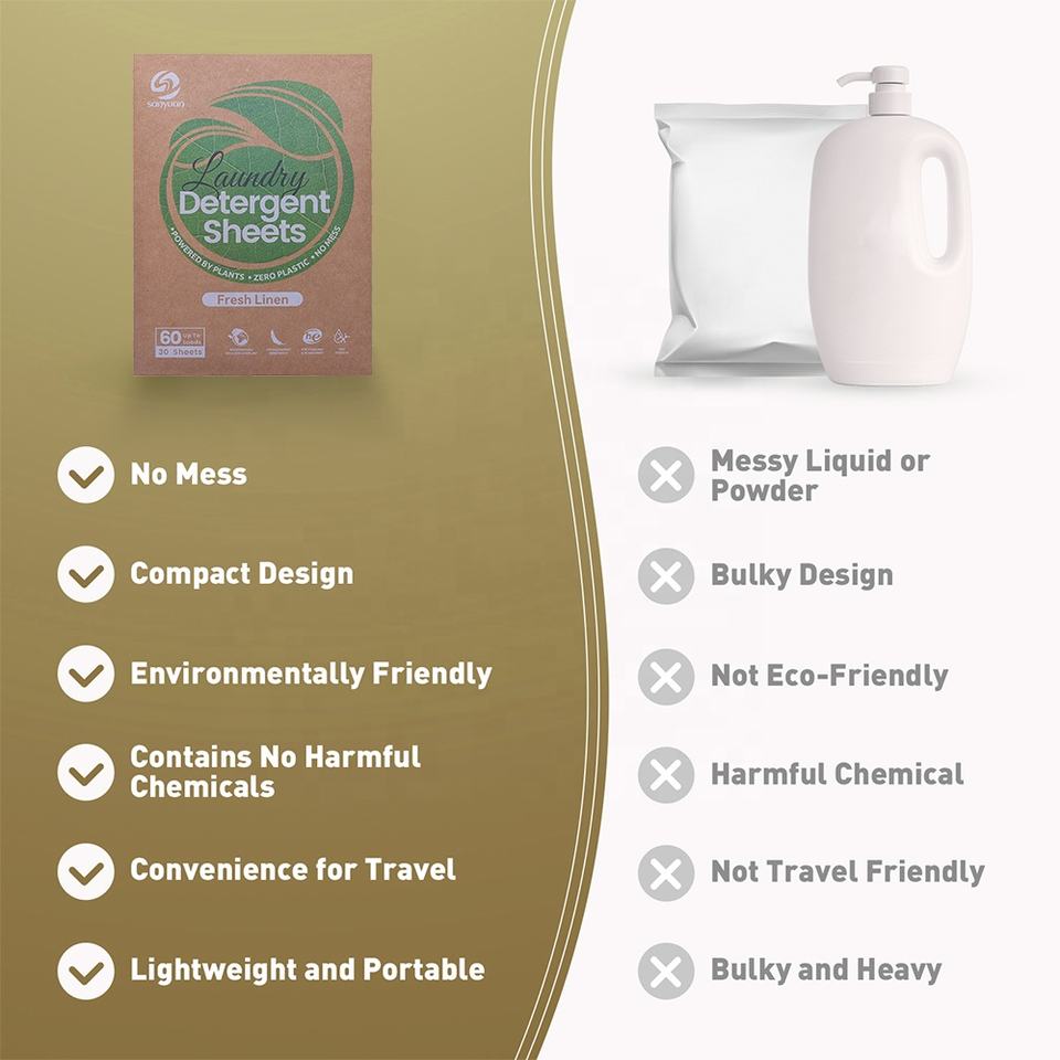 SANYUAN Natural Organic Laundry Soap Sheets Plant Based Biodegradable Dissolvable High Efficiency Laundry Detergent Sheets