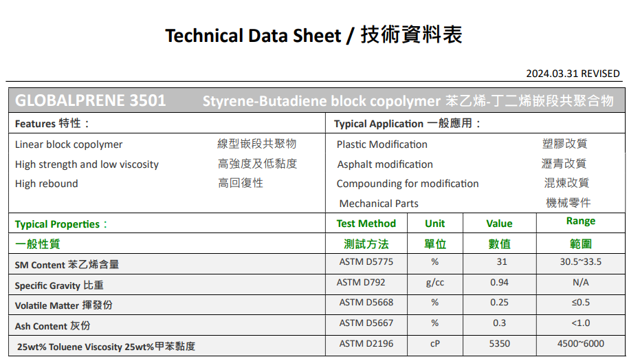 Styrene Butadiene Styrene SBS ResinProduct Name