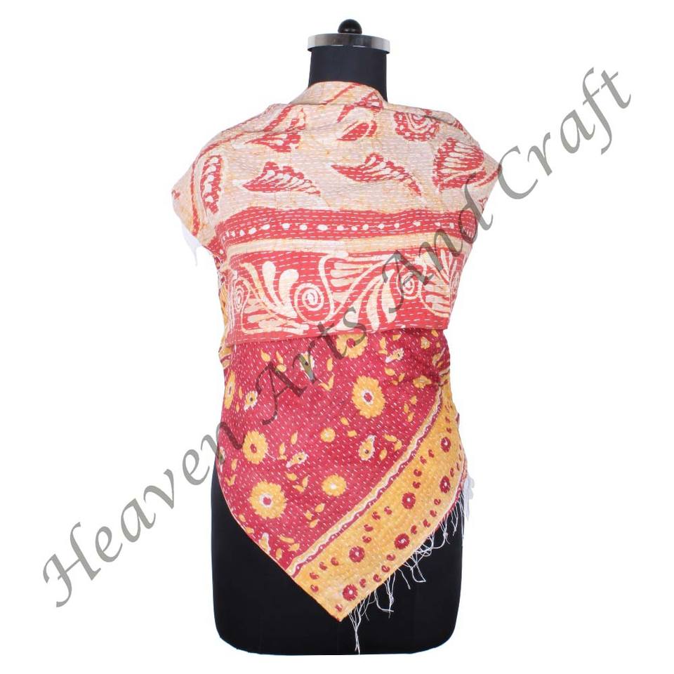 SC1038 Vintage Kantha Work Cotton Handmade Scarf Trendy Design Girls Allover Hand Stitched Plain Style Long Length