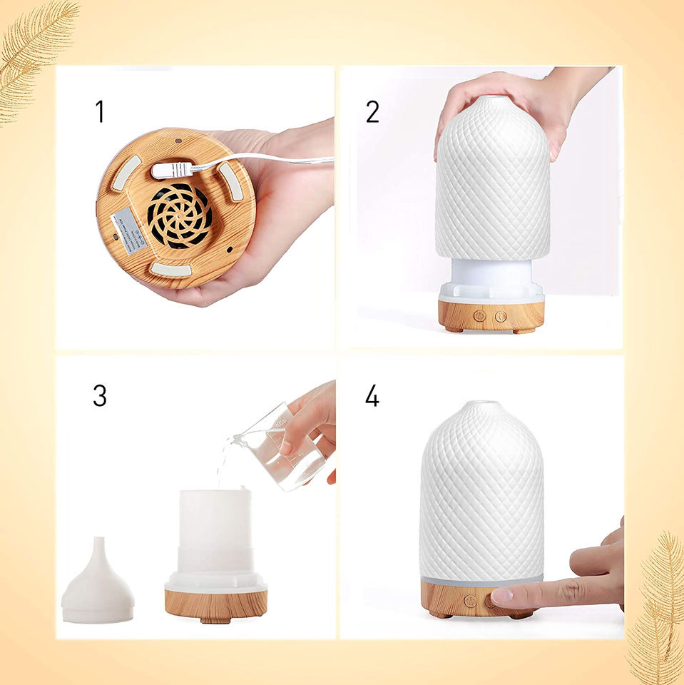 SCENTCARES Portable Electric Ceramic Stone Humidifier 100ml Cool Mist Aroma Humidifier with Essential Oil Diffuser Household Use