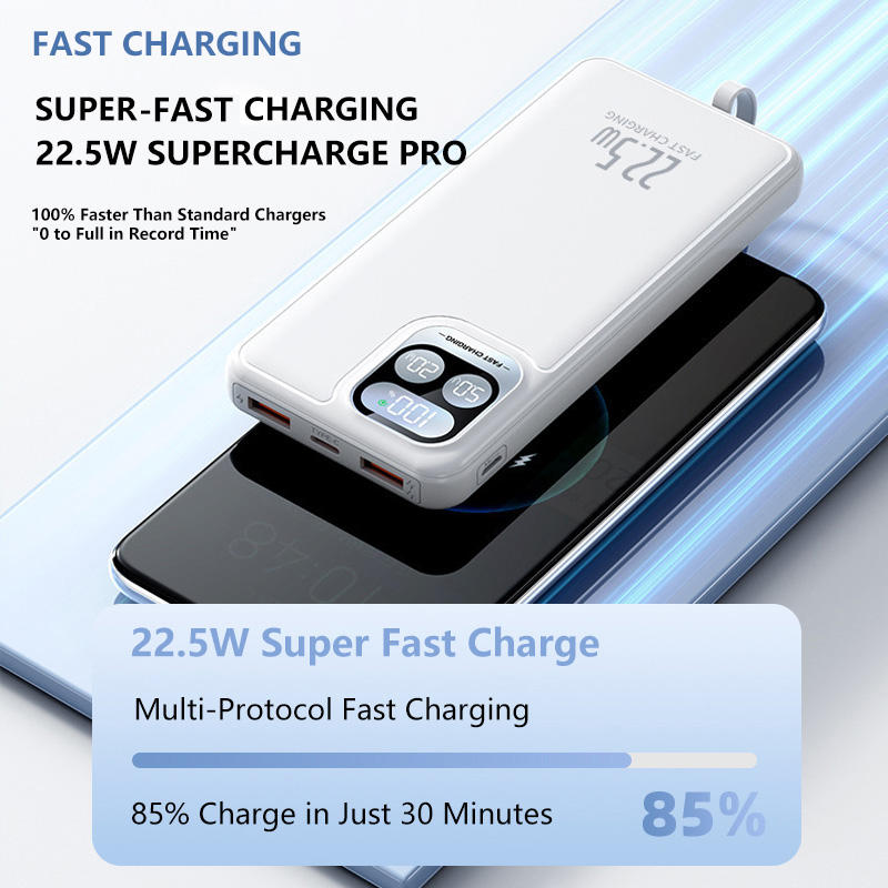 Ultra Slim, Fast Charging, High Capacity, With cable, Portable, Led Display, for outdoor, Portable power station, 2 in 1 quick charger power banktype
