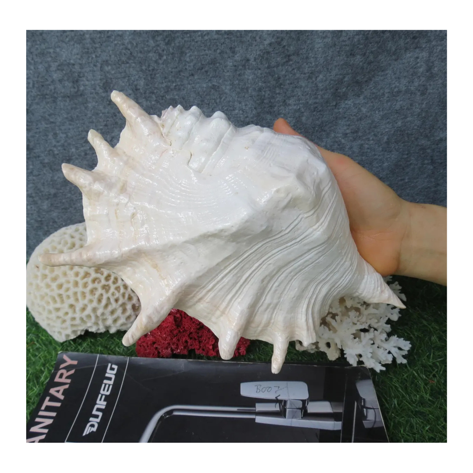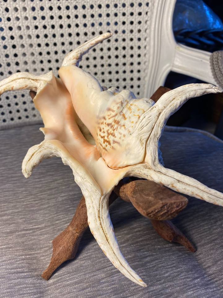 SEASHELL NIGHT LIGHT SPIKE SHELL WOOD BASE HANDMADE LARGE CONCH SHELL INTERIOR DECOR UNIQUE SOUVENIR