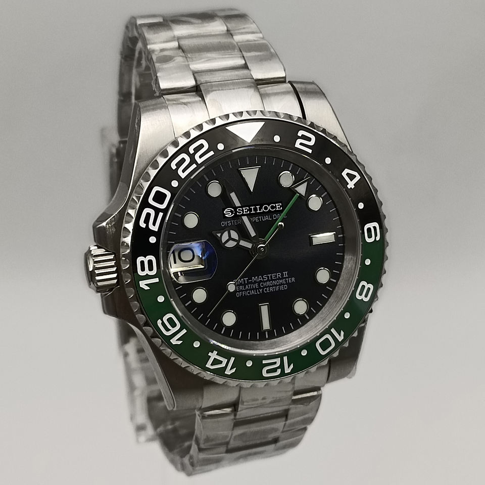 SEILOCE Men GMT Watch 40mm Automatic Mechanical Waterproof NH34 Luminous Sapphire Ceramic Bezel