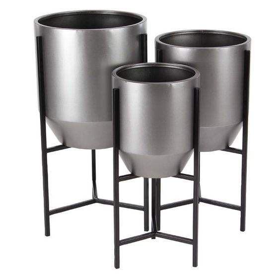 SET/2 Silver Antique-Finished Iron Planter Flower Vase New Design for Outdoor Home Garden Decorative Metal Floor Planter