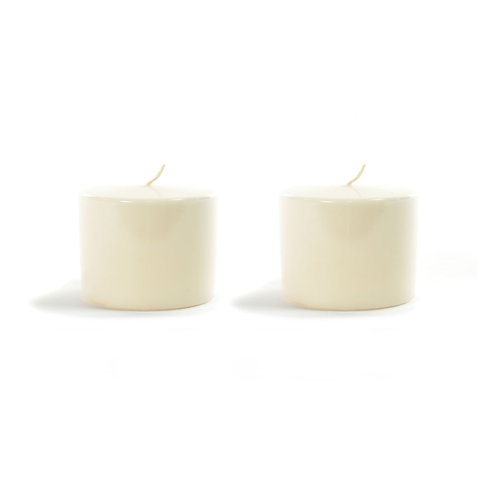 SET OF 2 IVORY GLOSSY PILLAR CANDLES 4X5CM