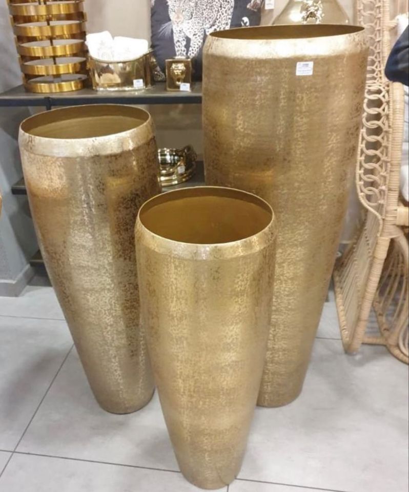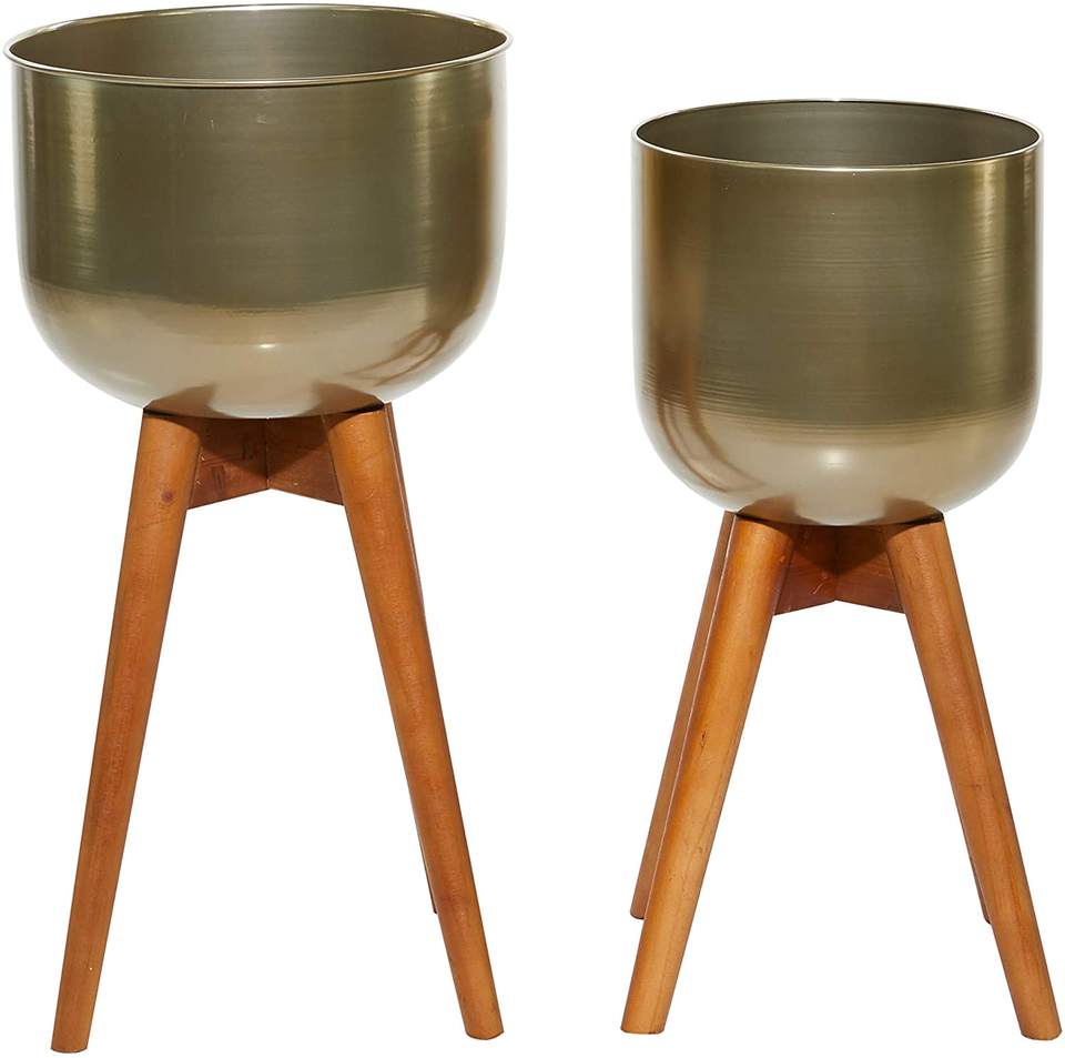 SET of 2 METAL PLANTER WITH WOOD BASE GOLD METAL FLOWER VASE DECORATION USE AS HOME and WEDDING DECORATION