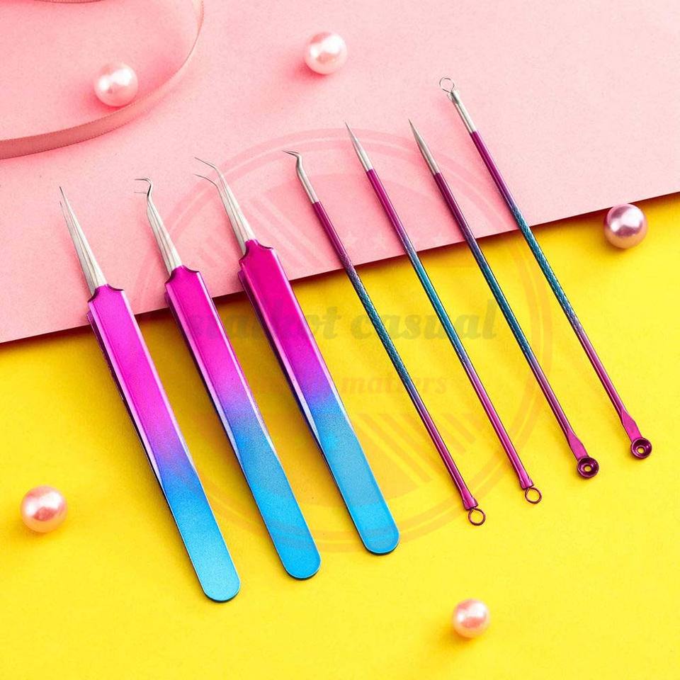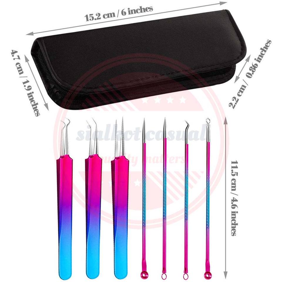 SET of 7 Blackhead Removal Tool Tweezers with Leather Case Stainless Steel Black Head Remover Tool