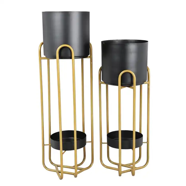 SET of 2 Luxury New Brass Metal Decoration New Latest Stylish Fancy Design Stand Planter for Home Indoor & Outdoor Flower Pot