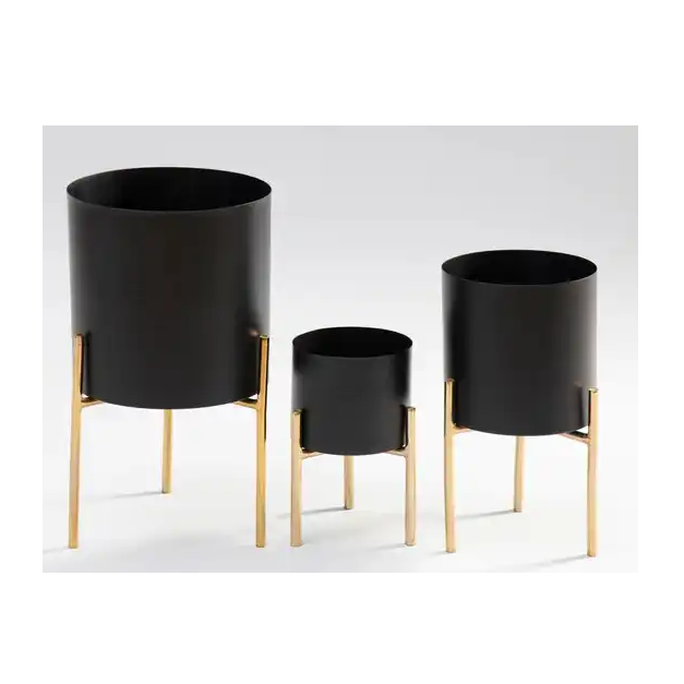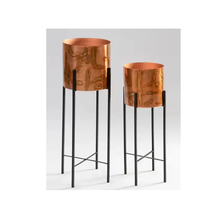SET of 2 Powder Coated Metal Planters Farmhouse Decor for Garden Patio Porch & Balcony Plant Pots With Stand for Home & Garden