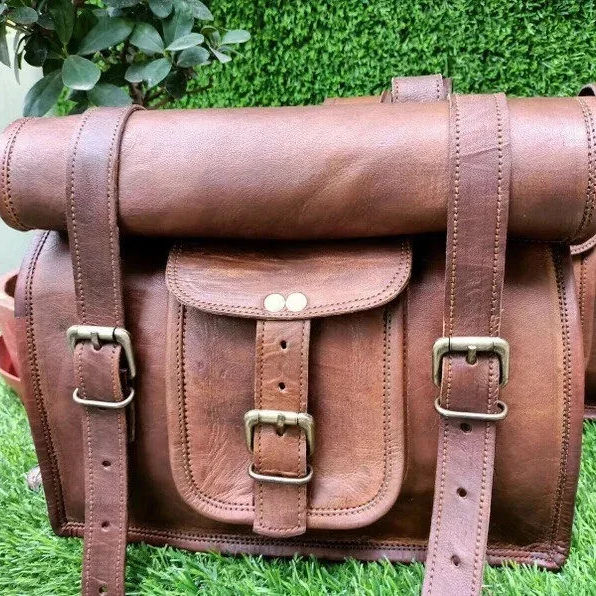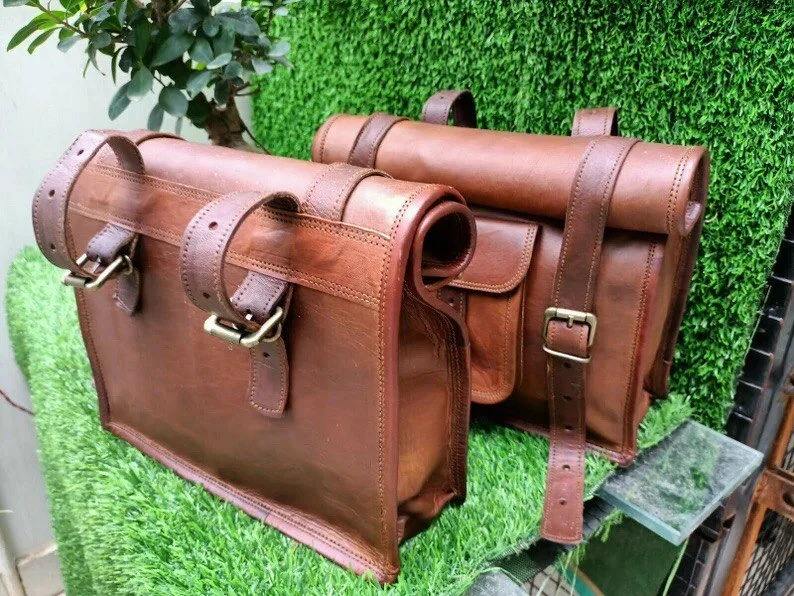 SET of Vintage Roll Saddle Motorcycle Bike Bag Leather