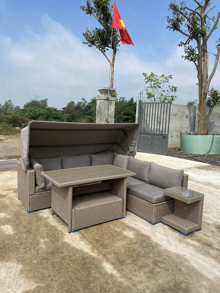 SF00008 Contemporary PE Rattan Outdoor Sofa Set Canopy Cushion Garden Terrace Bed Chair Patio Courtyard Furniture Living Room