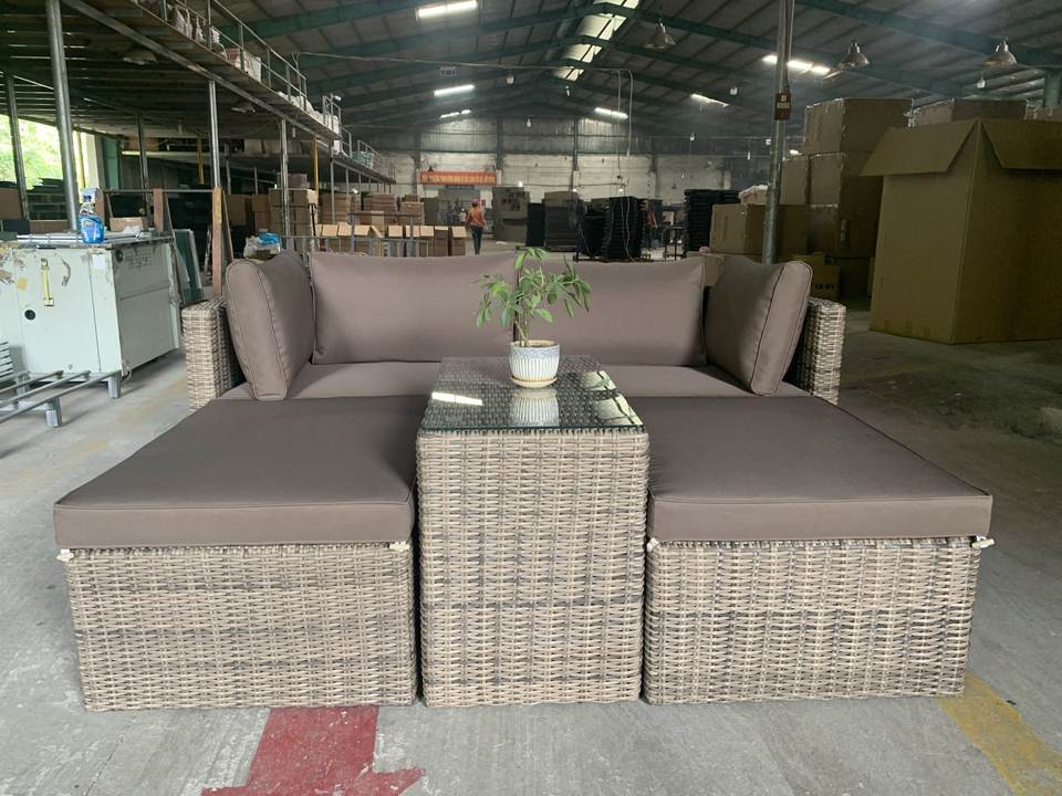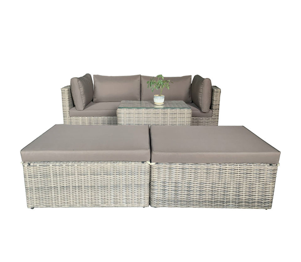 Rattan, steel, tempered glass, polyester cushionmaterial