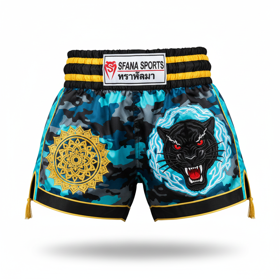 SFANA SPORTS High Quality Satin Stretch Boxing Shorts Custom Designed Muay Thai Style Front Training Shorts Lightweight
