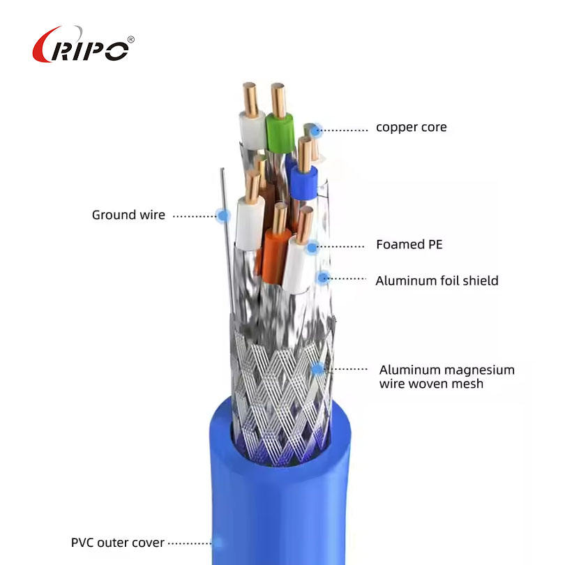 SFTP Double Shielded Cat8 Network Cable (8 Core 4 Pair) Indoor/Outdoor Engineering-Specific 10Gbps Speed Low-Attenuation Cable