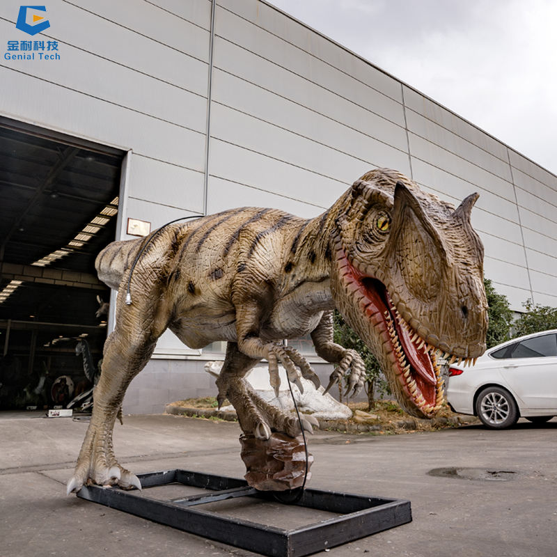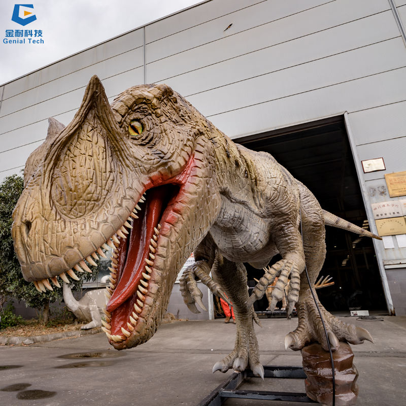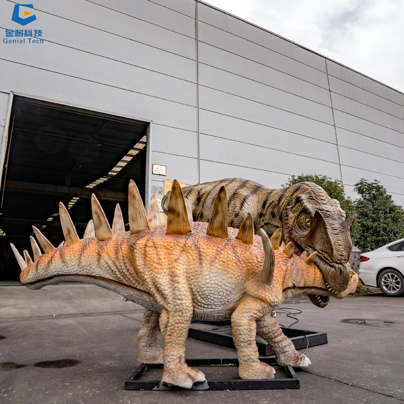 SGAD050 Outdoor Dino Theme Park Scene Animatronic Allosaurus Preying on Stegosaurus Dinosaur