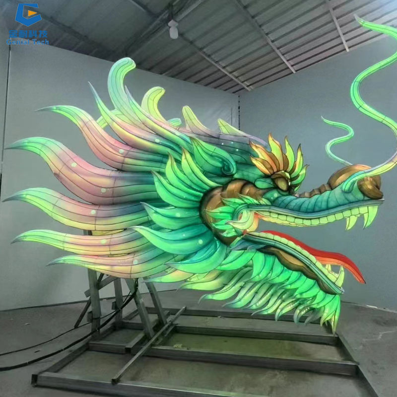 Product Name:Colorful Silk Cloth Traditional Festival Dergon Head Lantern for Event