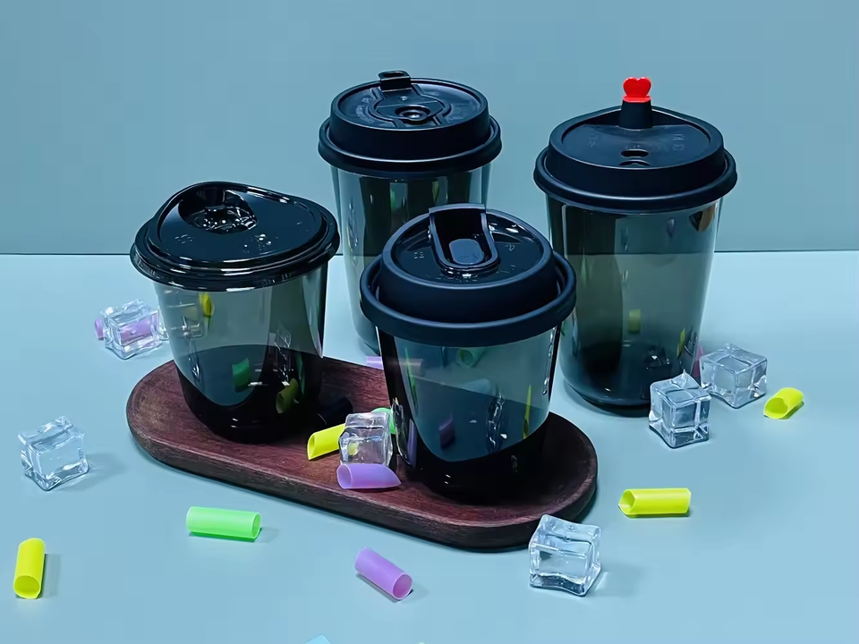 SGP Custom 300ml 355ml 380ml PET Plastic Coffee & Milk Cups Tax-Free Disposable Black Cups for Drinks Wholesale