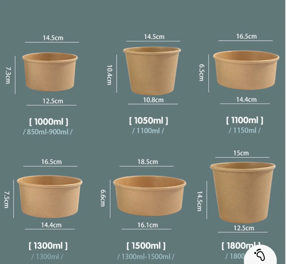 SGP Eco-friendly Double Wall Soup Salad Bowls 580ml 750ml 1000ml Capacity Biodegradable Kraft Paper with Lids Wholesale NO TAX
