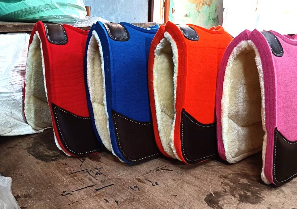SHAHI INTERNATIONAL SI-FP-70 Direct Manufacturer Wholesale Equestrians Genuine Plain Leather Saddle Pads Red Wool Felt Soft