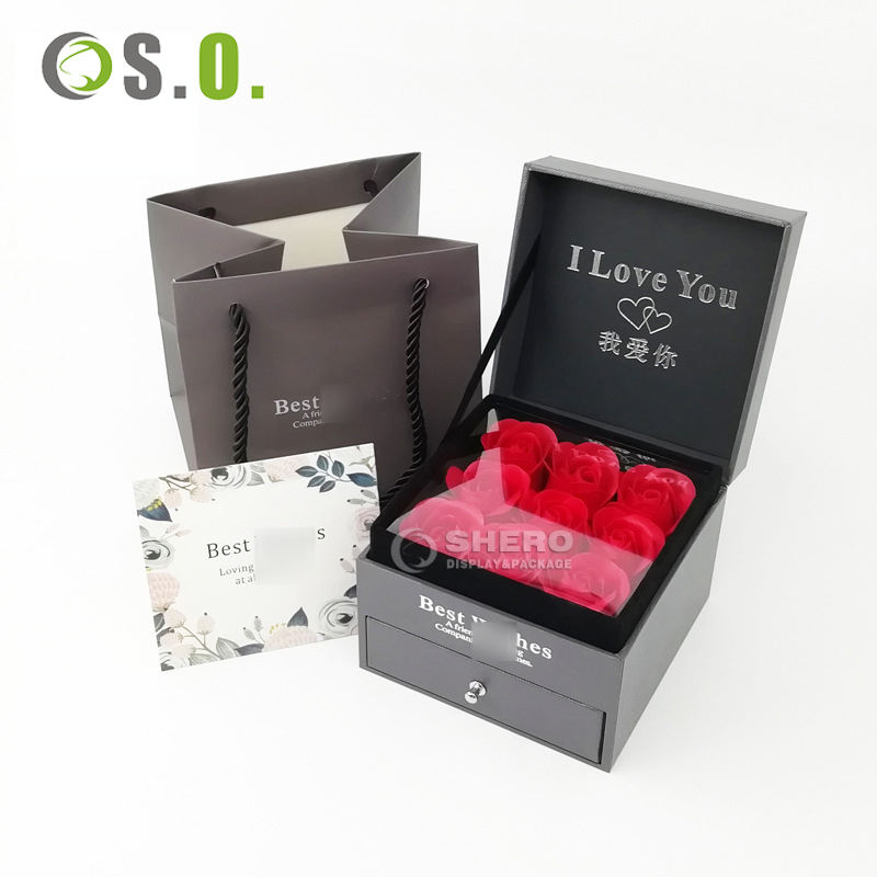 SHERO Gift for Mother Day Luxury square Acrylic square Jewelry Preserved Eternal Rose Box