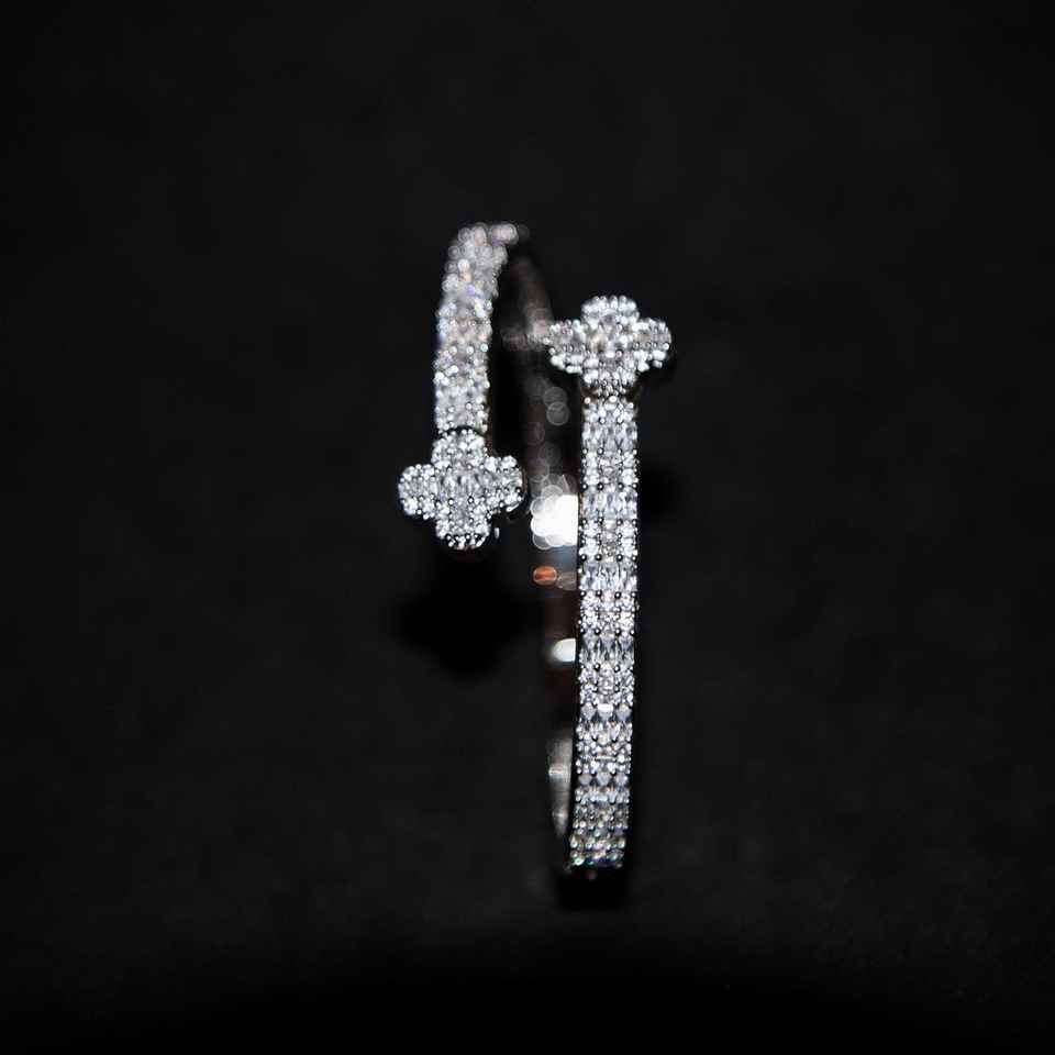 SHIVPATH Luxsy Adjustable 925 Sterling Silver Clover Bangle Bracelet Sparkling Diamond Pave Cuff Parties Gifts Weddings