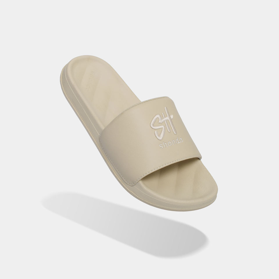 SHONDO Beige Outdoor Embroidered Slippers with Rubber Sole and Leather-Look Finish Men's & Women's Slides