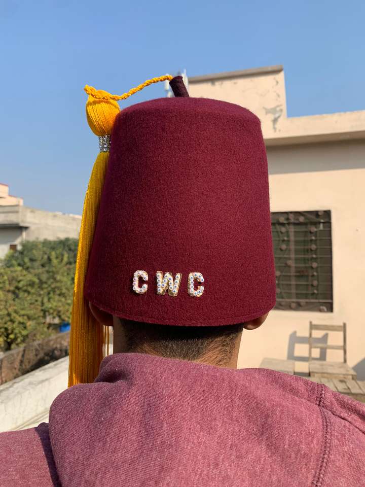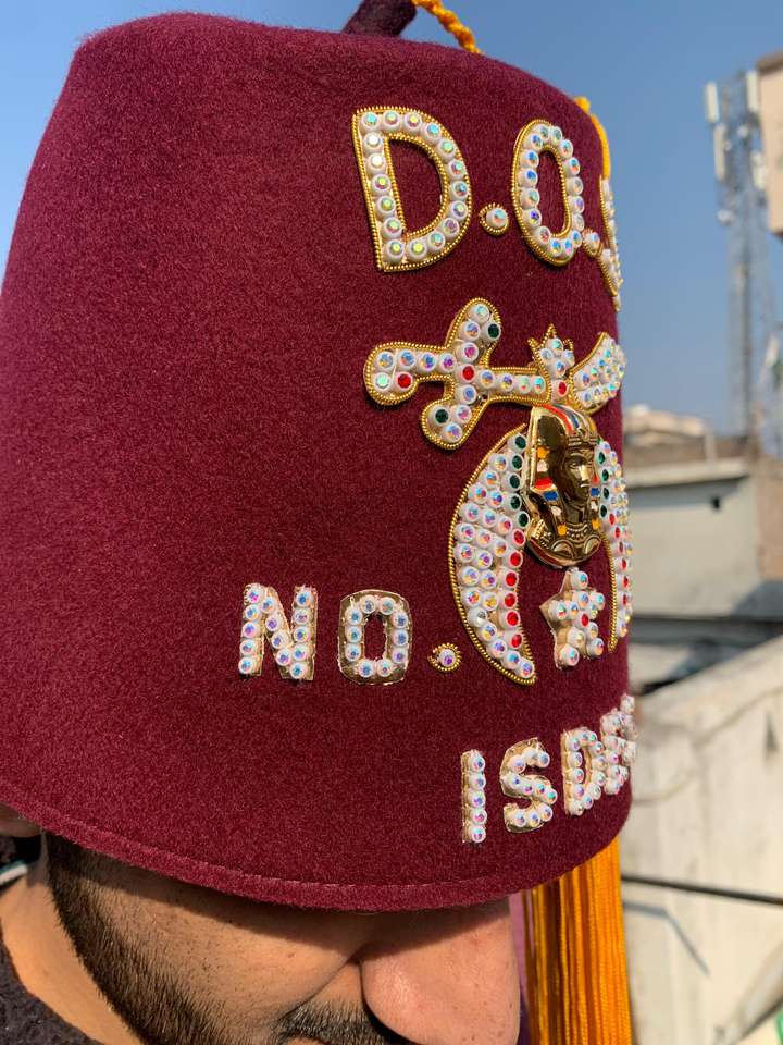 SHRINER FEZ MAROON WITH TEMPLE NAM HAND EMBROIDERED-HSE