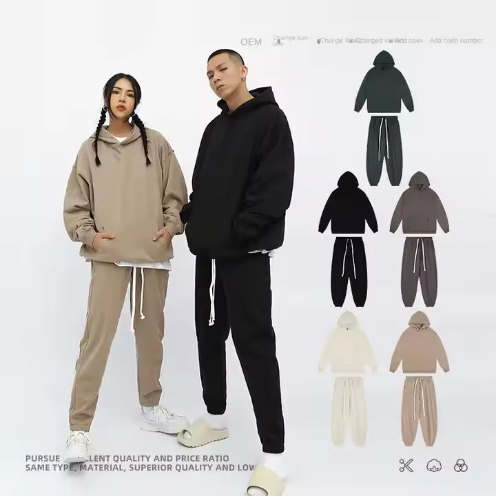 SHW-3045 Men's 100% Cotton Hooded Suit Autumn Heavy 420g Terry Multicolor Solid Color Loose Anti-Pilling Pants