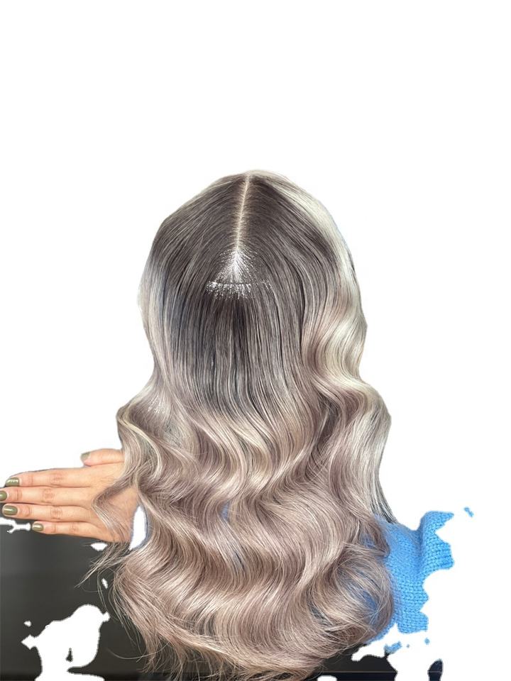 SHY Fashion Ombre Blonde Dark Roots Color 4*4 Silk Base Lace Front Topper for White Women Thin Human Hair Russian 8*8 Mini Wig