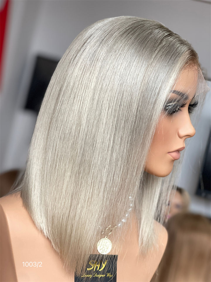 SHY Virgin European Hair for Lace Front Wig 12Inch Long Straight Blonde Transparent Lace Cap Middle Part Baby Hair Women