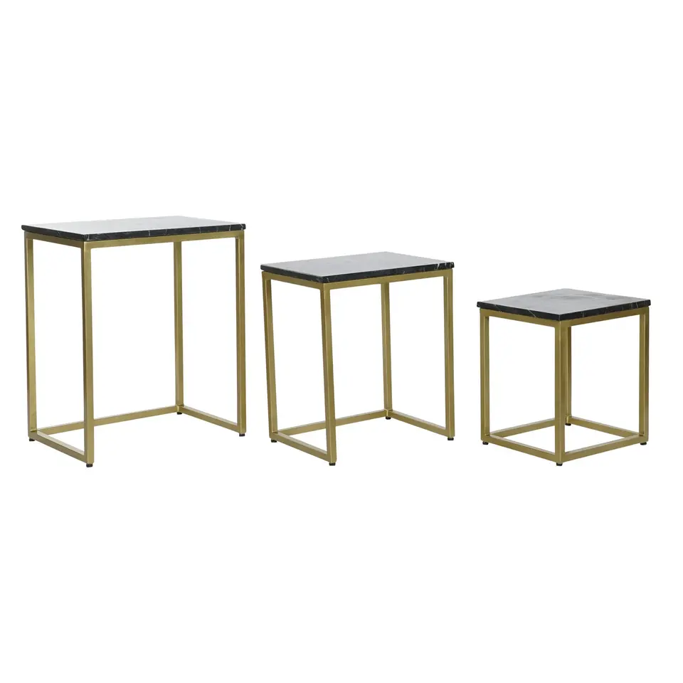 SIDE TABLE SET of 3 MARBLE IRON 50X35X60 BLACK