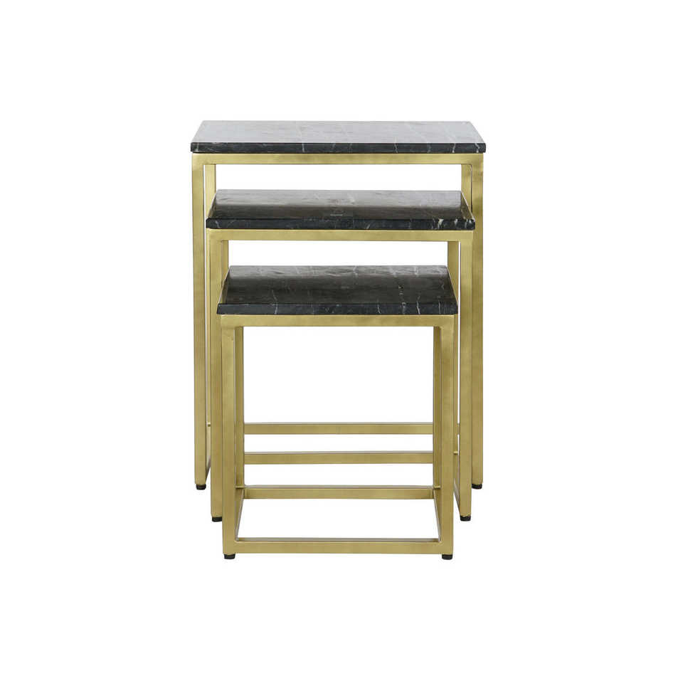 SIDE TABLE SET of 3 MARBLE IRON 50X35X60 BLACK