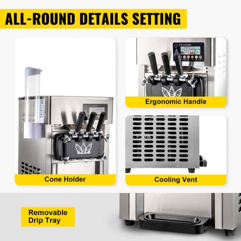 SIHAO A168 Low Price 18L/H Soft Serve Ice Cream Machine with 2+1 Flavors