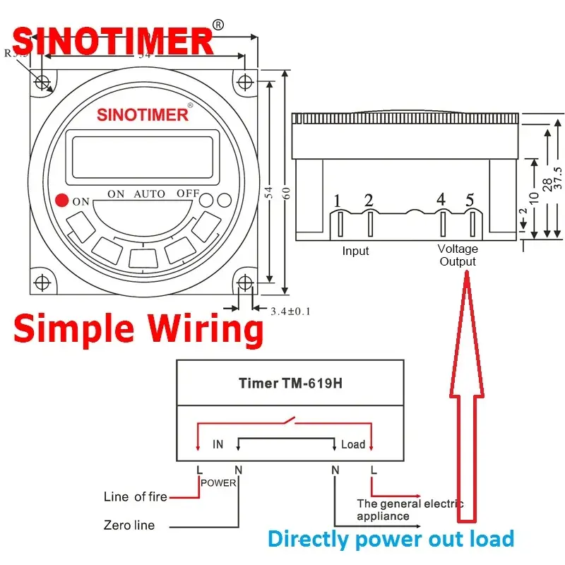SINOTIMER TM619H2 Mini 220V AC Digital LCD Timer Switch Weekly Programmable Daily Timers Relay Control Lighting CE RoHS