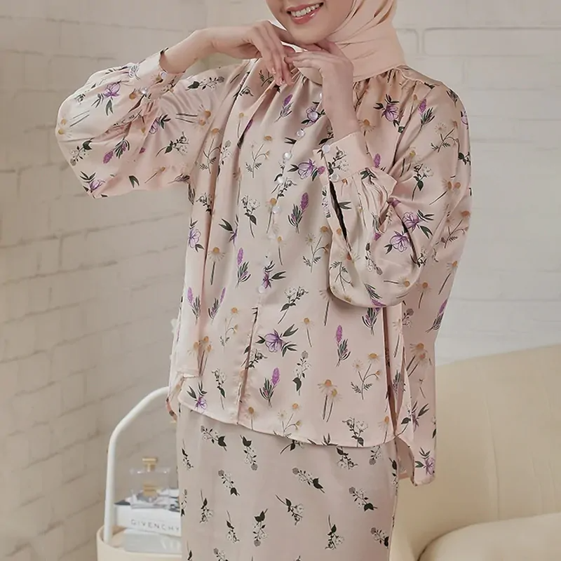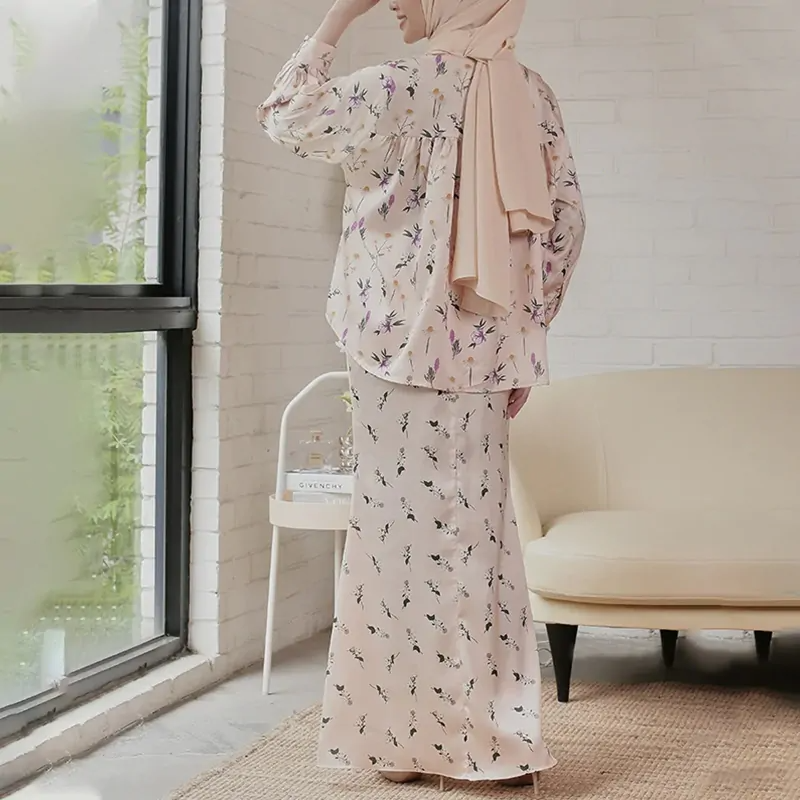 SIPO Eid 2024 Malaysia Muslimah Perempuan Flora Print Kurung Peach Cream Dress Modern Baju Kurung