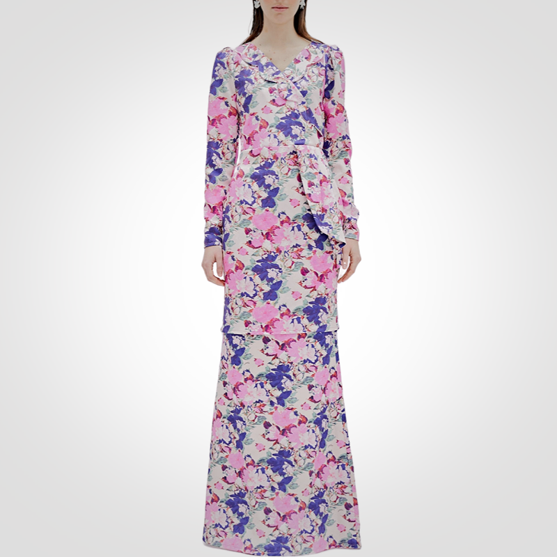 SIPO Eid Hot Selling Malaysia Muslimah Women Set Scallop Overlapped Bodice and Side Peplum Modern Baju Kurung