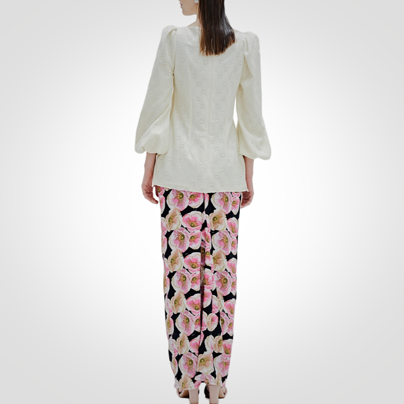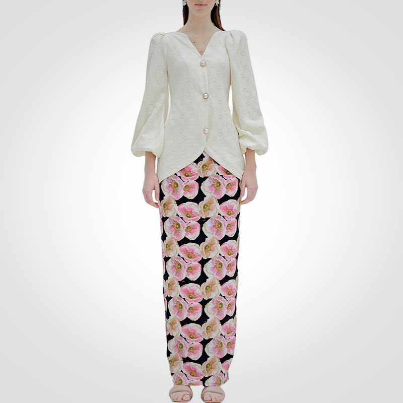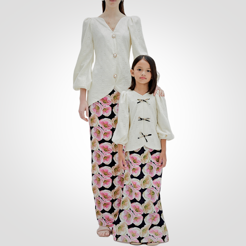 SIPO Eid New Design Malaysia Mini Kurung Muslim Women Set With Petal Bodice Design and Printed Skirt Modern Baju Kurung