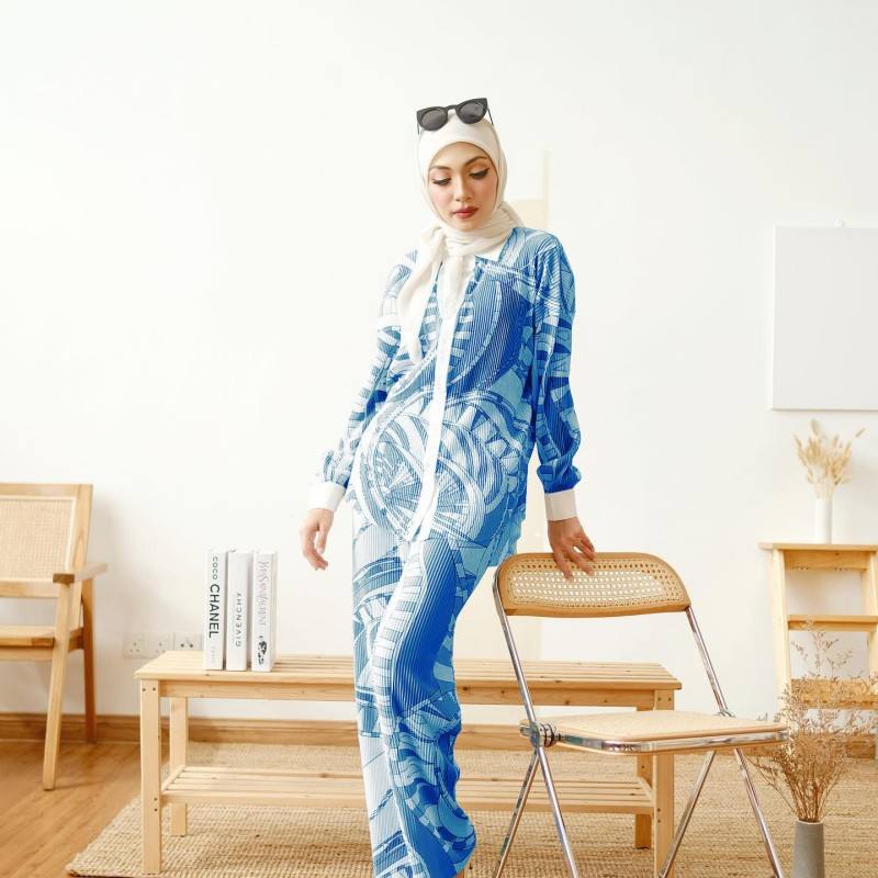SIPO Malaysia 2023 Muslim Long-Sleeved Pleated Chiffon Shirt Women Modest Comfortable 2 Piece Co Ord Set Modest Wear