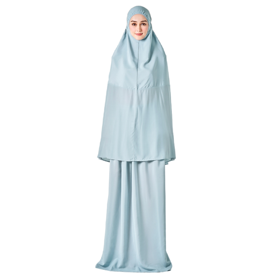 SIPO Malaysia Ramadan Muslim Women Eid Modest Dress 2 Piece Jilbab Abaya Muslim Lace Hem Milk Silk Tudung Telekung